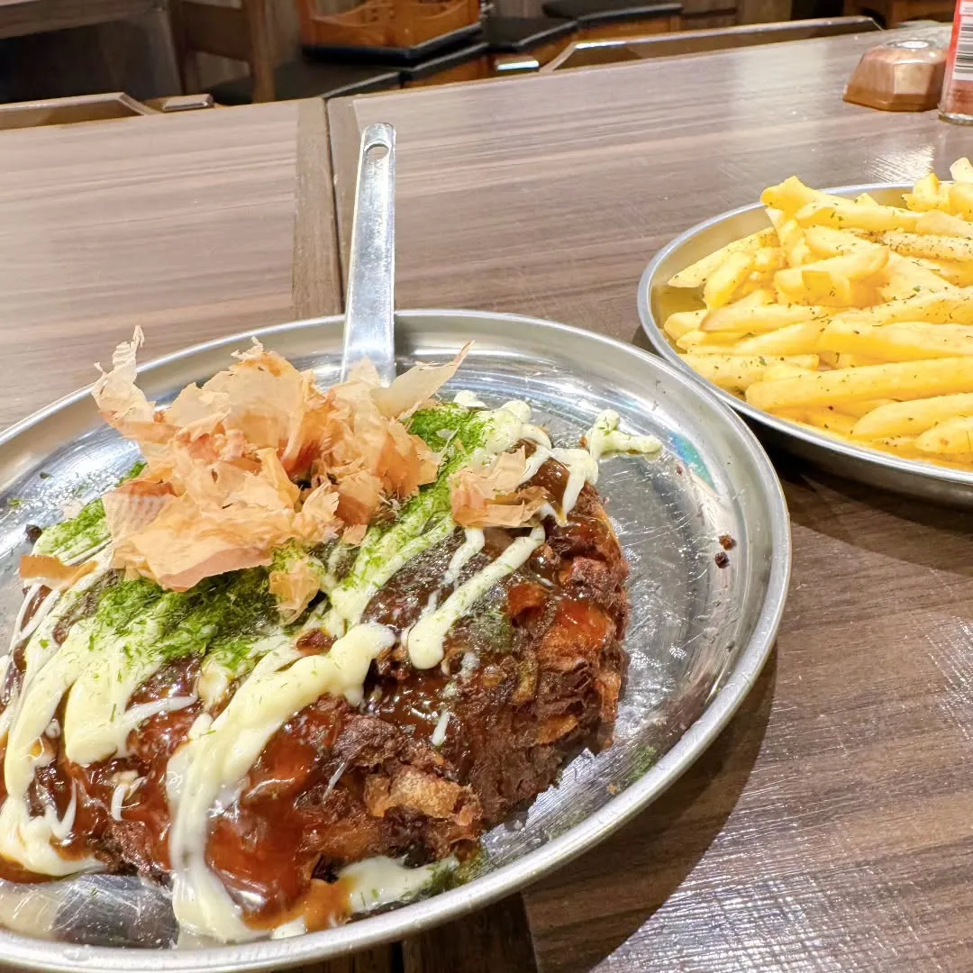\‼️味もボリュームもバッチリの一品‼️/ \‼️味もボリュームもバッチリの一品‼️/じゅわっと焼き上がったお好み焼きは、見ているだけでも楽しさが倍増します🥹✨️✨️お客様の好みに合わせてトッピングも提供しています🔥また、飲み物との相性も抜群…